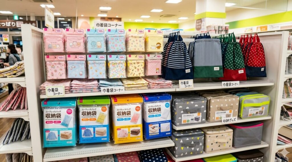 最近では、中身が確認しやすい片面クリア素材のシューズ袋や、消臭効果のあるタグがついた巾着など、ちょっとしたアイデアが光る商品も増えてきました。人と被りたくない、ちょっと気の利いたデザインを探しているなら、キャンドゥを覗いてみる価値は大いにあります。