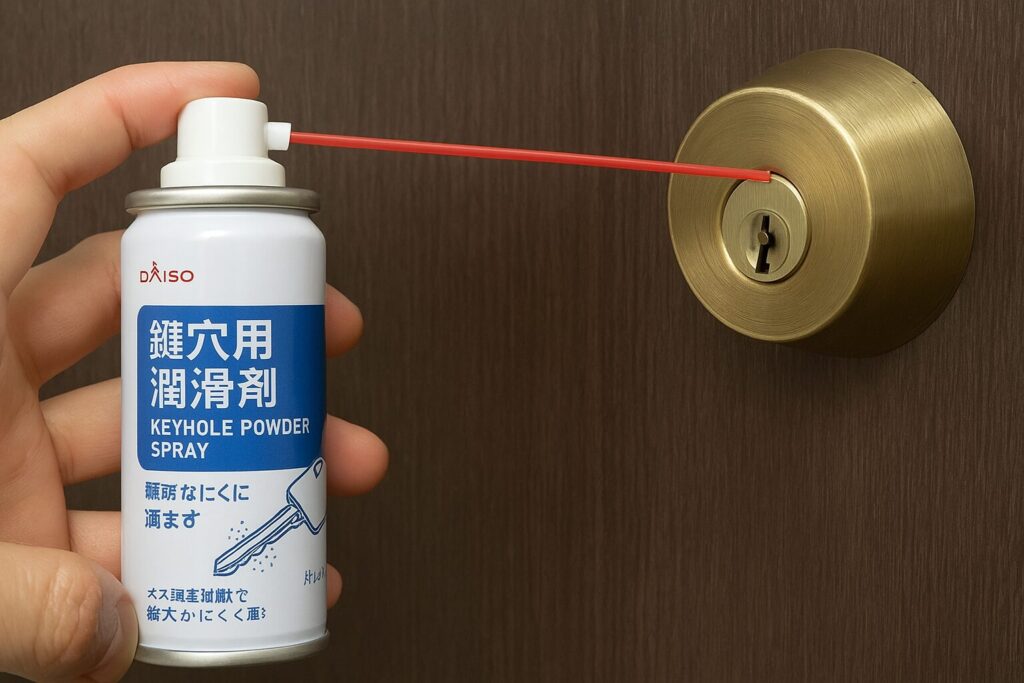 - 鍵穴用潤滑剤は「ダイソー」でも購入可能